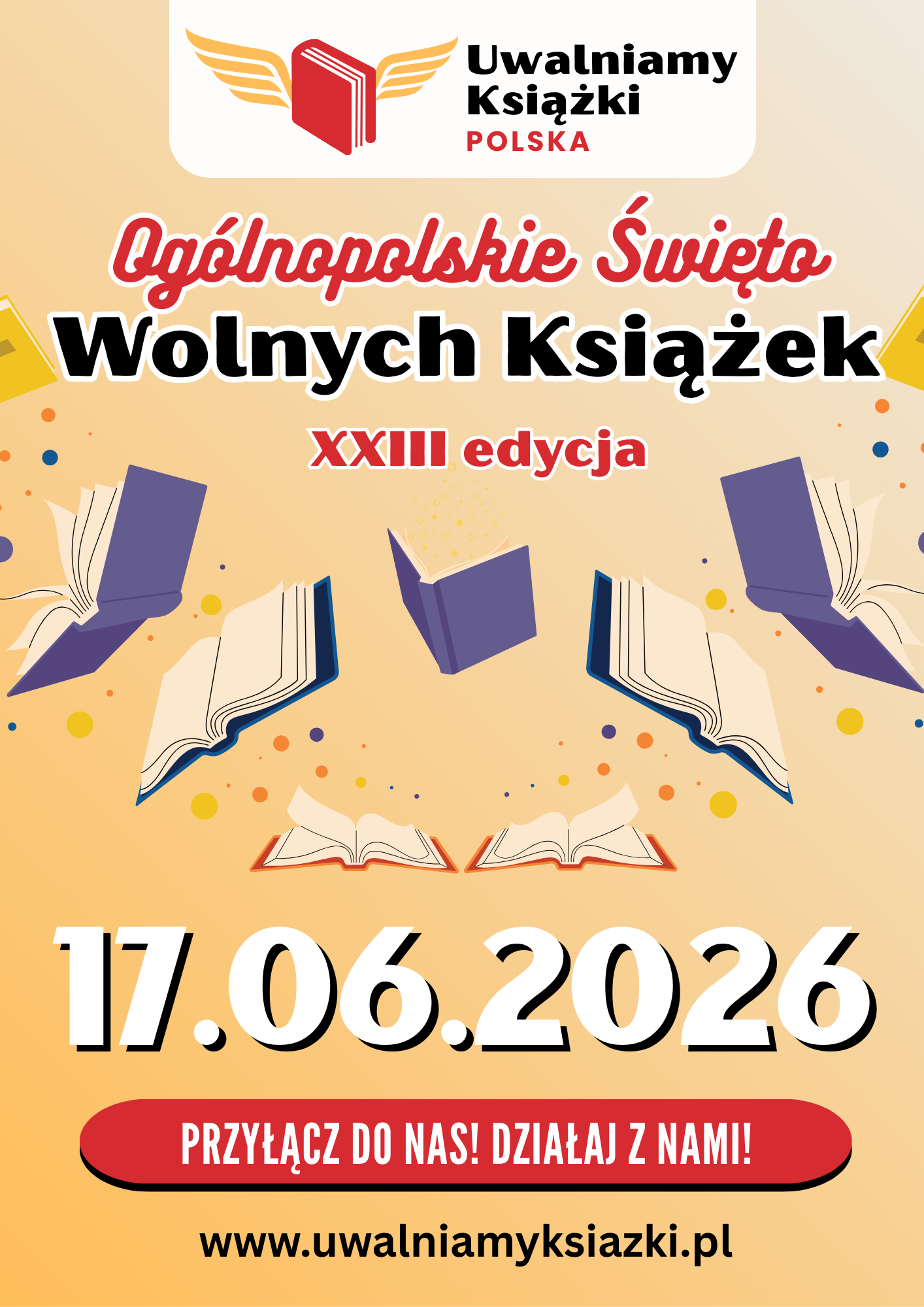 17 czerwca zapraszamy Was do wspólnego świętowania 23. edycji Ogólnopolskiego Święta Wolnych Książek – dnia, w którym historie nabierają skrzydeł, a słowa znajdują nowych czytelników.